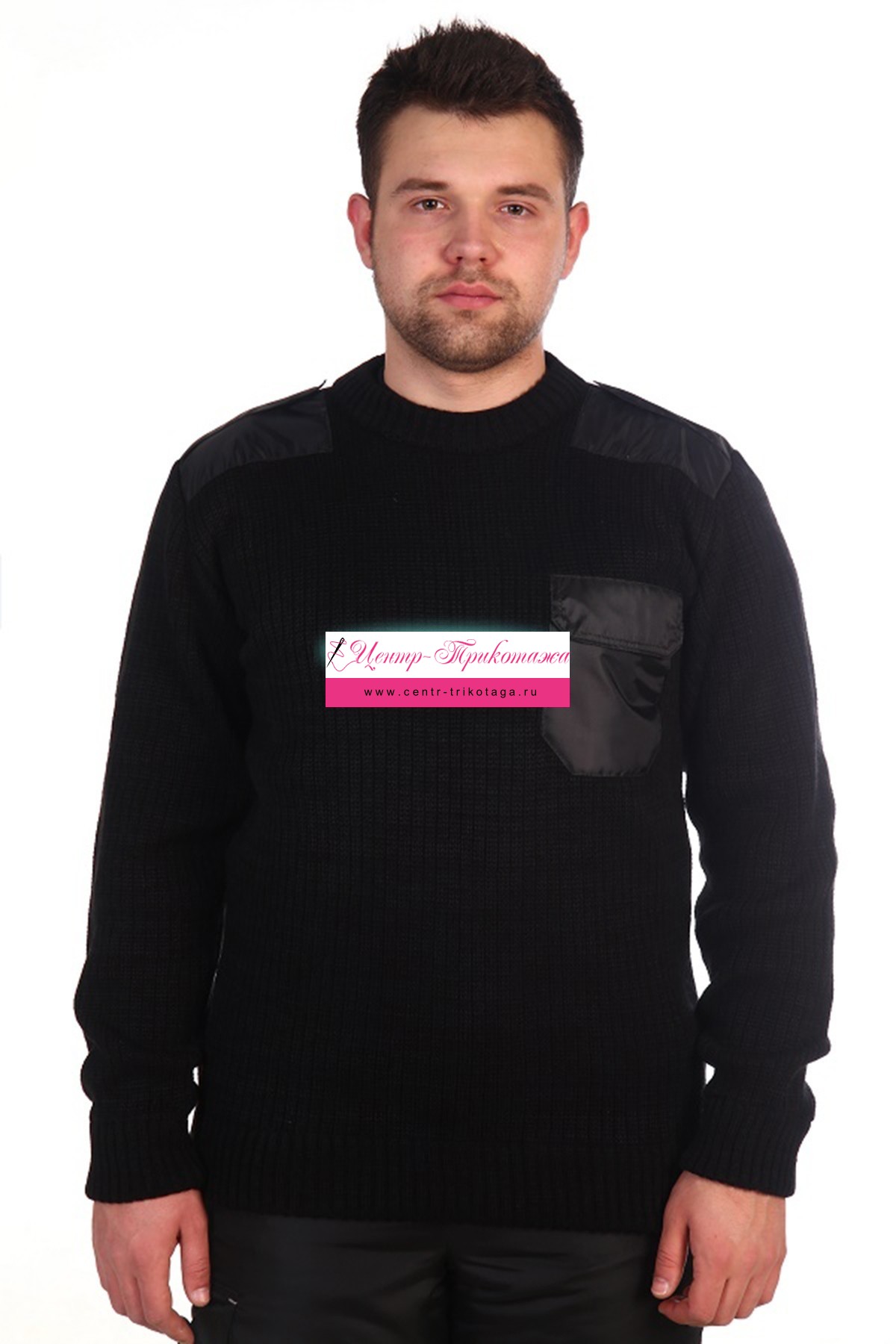 Классическая модель мужского джемпера с круглым вырезом горловины. Трикотажное полотно с добавлением нити акрила