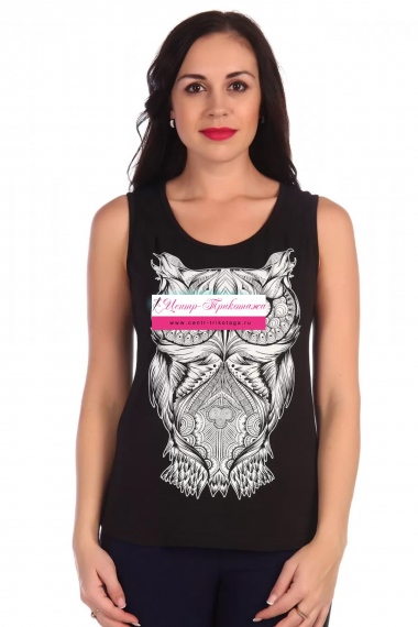 Майка "Элис" (черный, сова) №ЛТ-0280ЧС