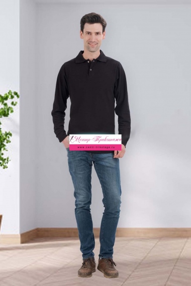 Рубашка - поло мужская арт. ТР-14-51-ПИК (чёрная, длинный рукав) №УФР-ТР-416