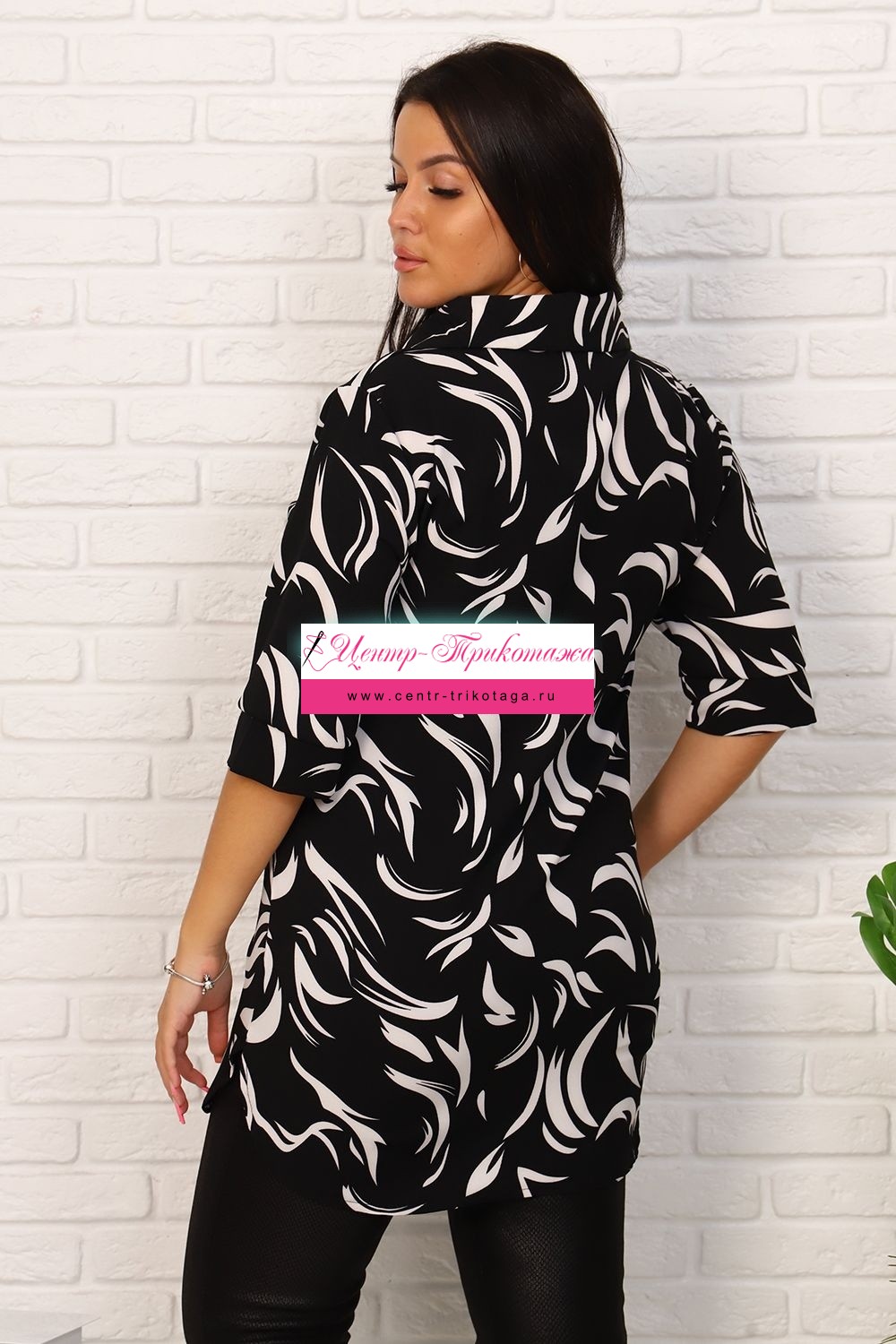 Легкая туника прямого покроя, рукава 34 на манжете. Воротник отложной, на полочке планка, украшенная декоративными пуговицами.