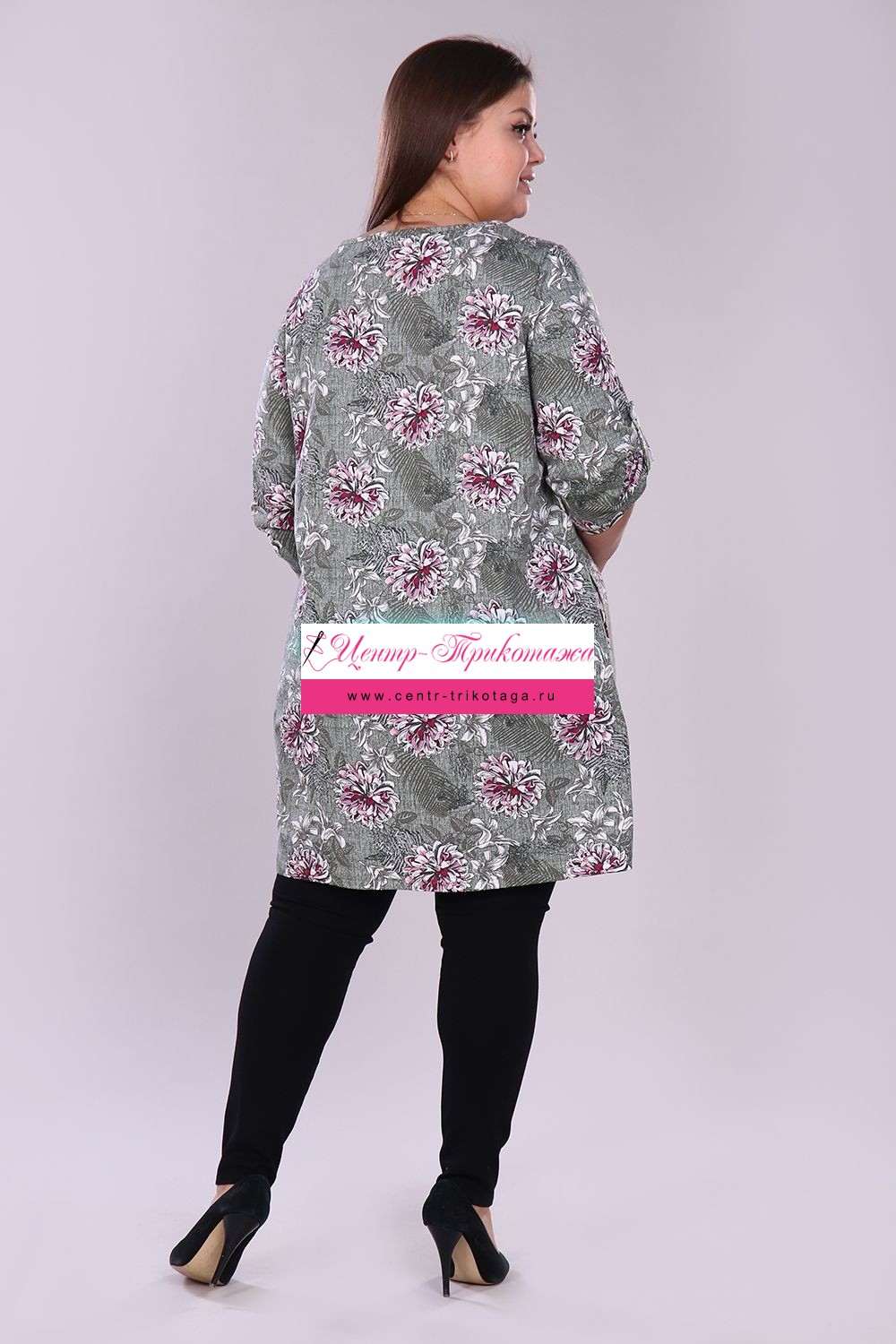 Удлинённая женская туника свободного кроя выполнена из 100% хлопчатобумажного полотна. По горловине расположен треугольный вырез, рукав 3/4. На рукавах имеются паты, закреплённые светлыми серебристыми пуговицами, что делает изделие более привлекательным. Данная туника для полноразмерных дам помогает скрыть недостатки фигуры и подчеркнуть достоинства, тем самым создавая стильный образ, в котором Вы будете чувствовать себя максимально комфортно и уверенно. На модели 52 размер