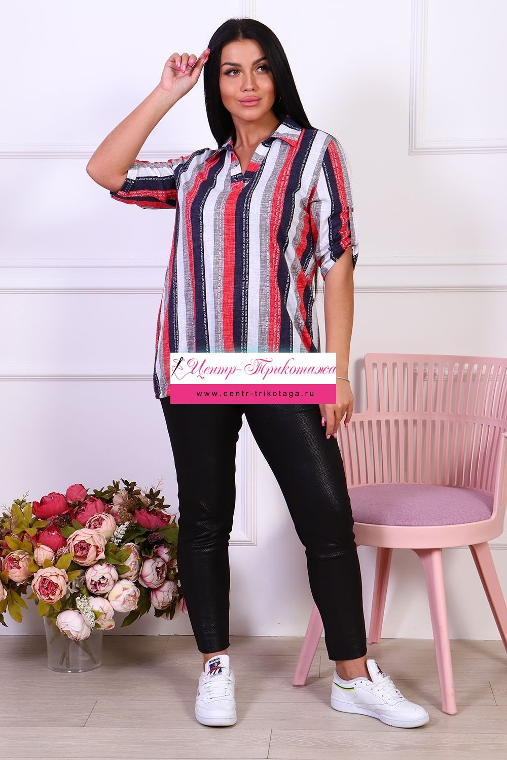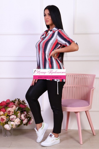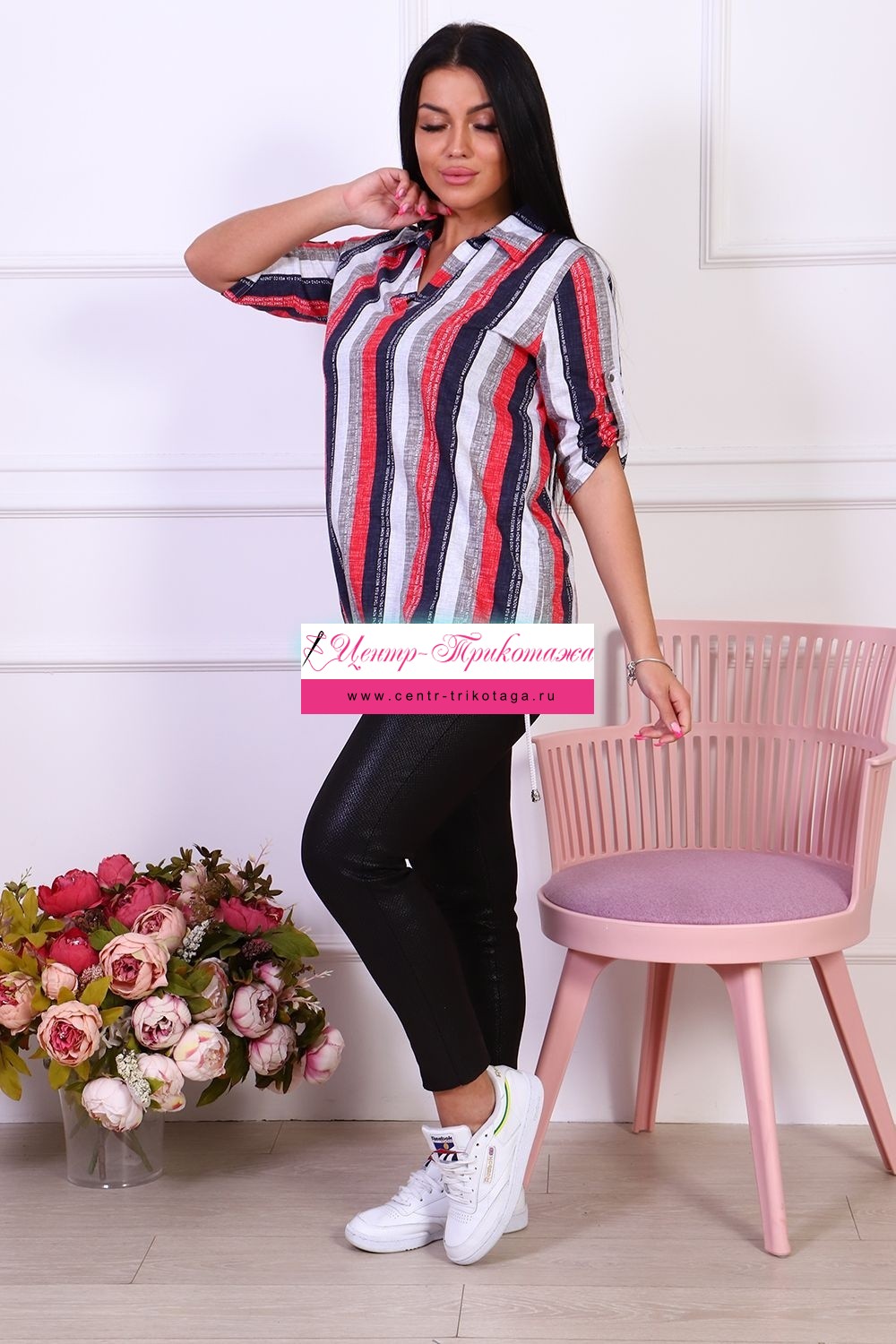 Женская стильная туника рубашечного плана из 100% хлопчатобумажного полотна в полоску. Рукав 3/4 с патами на кнопках, горловина с отложным воротником и втачной V - образной планкой с отделкой из кнопок. Низ изделия на шнурке. Яркая контрастная полоска является одним из модных вариантов расцветки рубашки-туники. Лаконичной такую модель не назовёшь так как выглядит она ярко и стильно, и к тому же она зрительно стройнит и вытягивает фигуру.