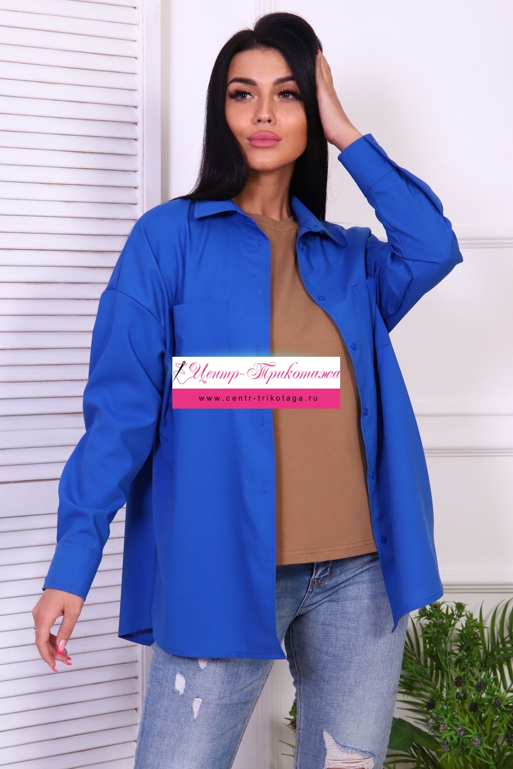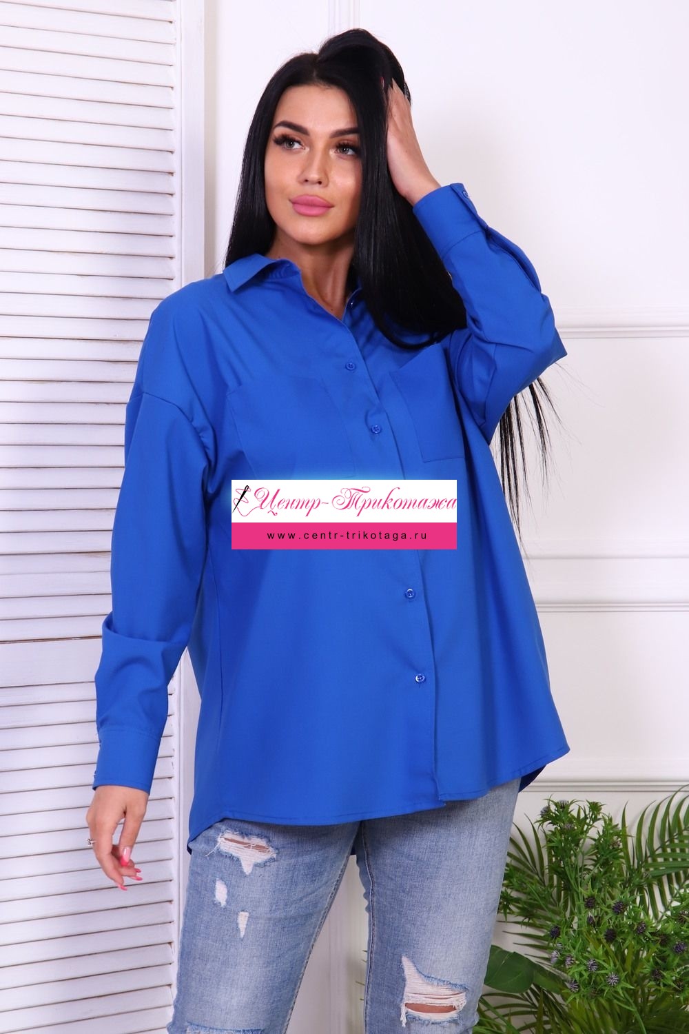 Туника рубашечного кроя, оверсайз, с длинным рукавом. Фигурный низ, застегивается на пуговицы, два нагрудных кармана.