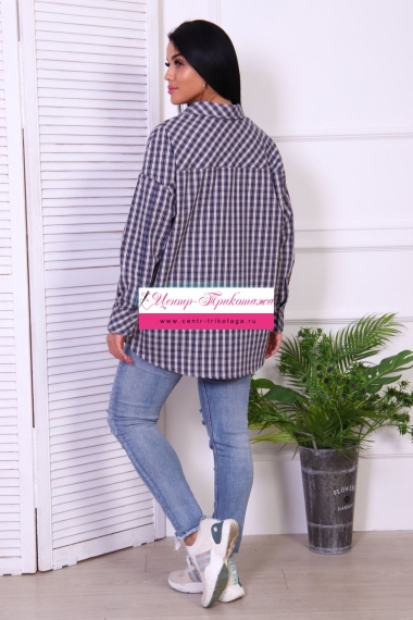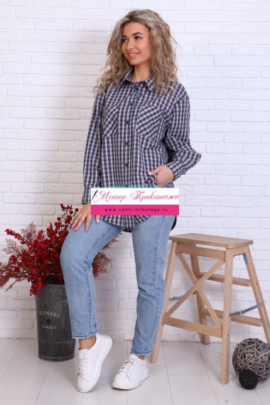 Рубашка оверсайз в клетку, центральная застежка на пуговицы, силуэт прямой, 2 кармана.