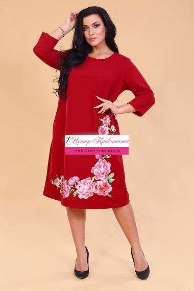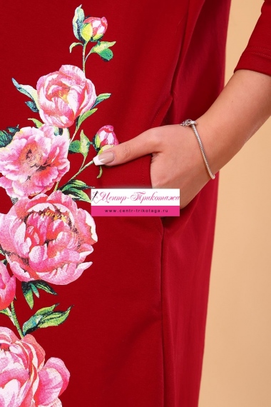Стильная туника из футера, свободного кроя с большим принтом, рукава 3/4, кокетка фигурная, боковые карманы