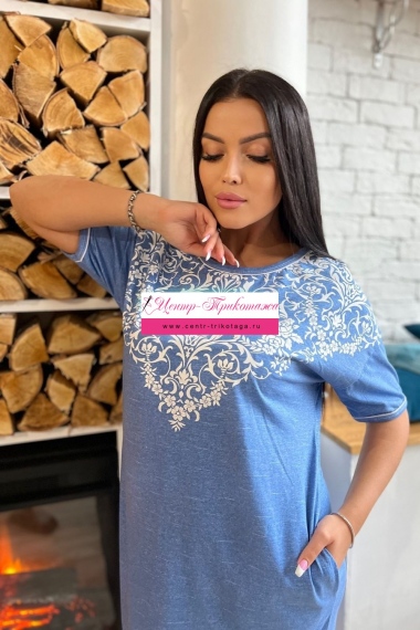 Туника прямого силуэта, с округлой горловиной, с разрезами в нижней части боковых швов. Горловина и низ рукавов обработаны бейкой из основного полотна.