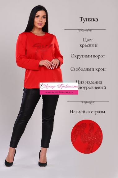 Туника женская с оригинальным принтом в виде большого цветка, из футера с лайкрой 2-х нитки высокого качества пенье. Модель слегка приталенного силуэта, горловина в виде лодочки обработана обтачкой, спущенная пройма, 3/4 рукав. Стильная туника отличный офисный вариант для деловой, современной девушки.