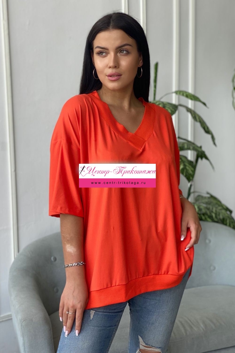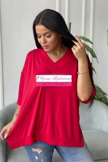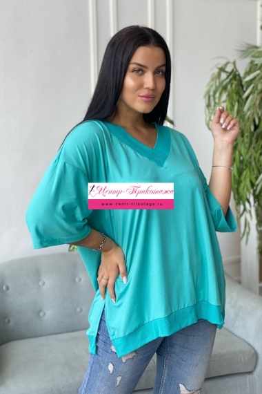 Туника женская прямого силуэта, оверсайз. Вырез Y-образный. Рукав рубашечного покроя. В боковых швах разрезы.