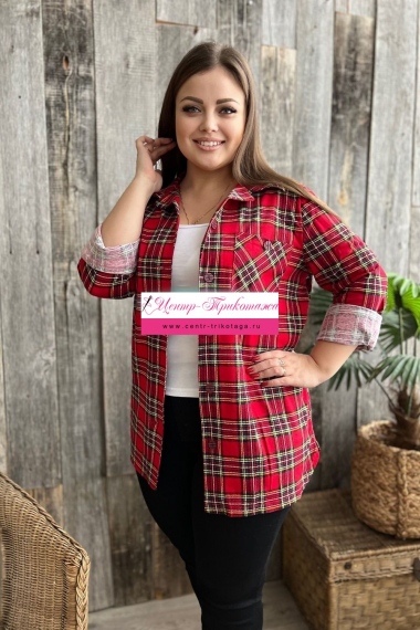 Туника женская прямого силуэта с отложным воротником. Застежка на петли - пуговицы. Рукав длинный, втачной с манжетой. Низ туники фигурный, спинка несколько длиннее полочки. На полочке нагрудный карман. На модели 52 размер