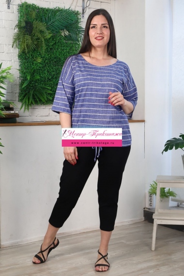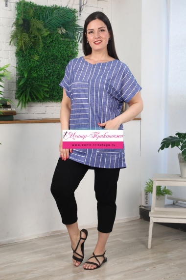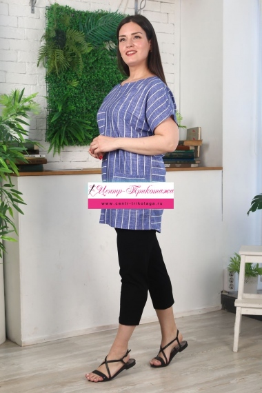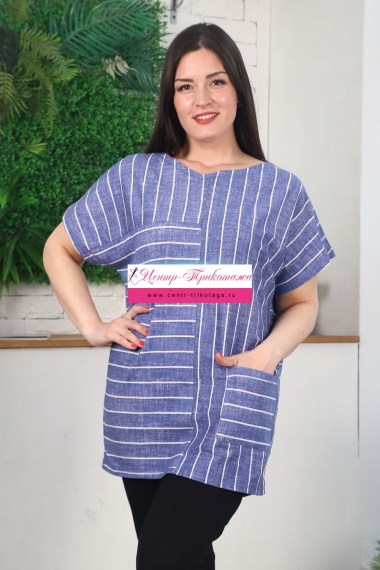 Туника женская прямого силуэта. Рукав цельнокроенный со швом. Горловина круглая. Низ туники фиксируется завязками.