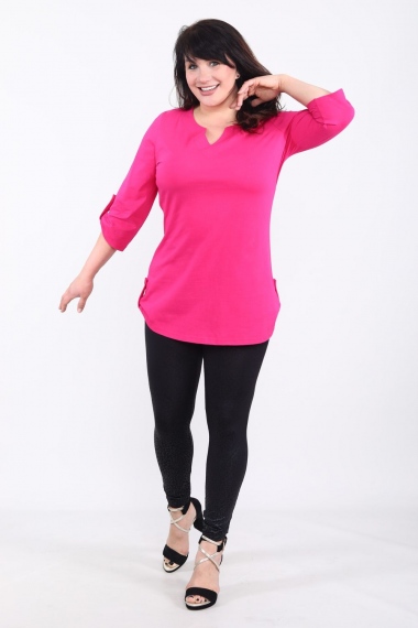 Туника полуприлегающего силуэта, средней длины, с округлой горловиной, с карманами в рельефных швах полочки. Рукав реглан, длиной 3/4. С разрезами в нижней части боковых швов. Горловина обработан бейкой из основного полотна.