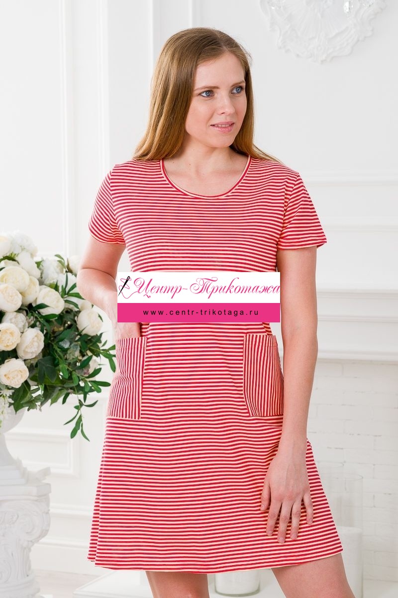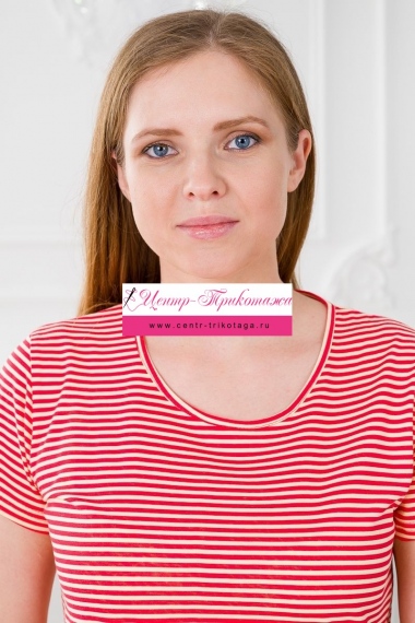 Туника женская из кулирки Руслана красная полоса на бежевом №А-03686