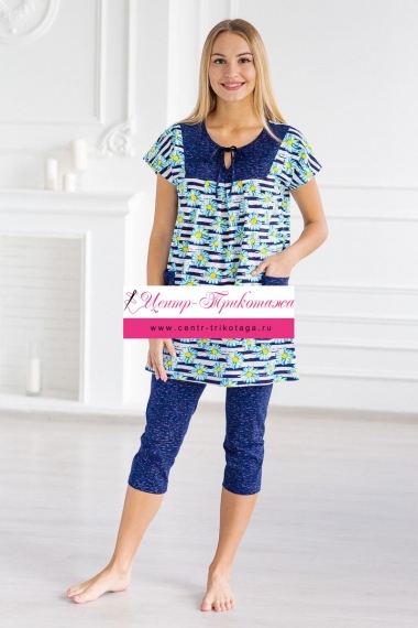 Туника женская из кулирки в домашнем стиле Ромашки №А-3229