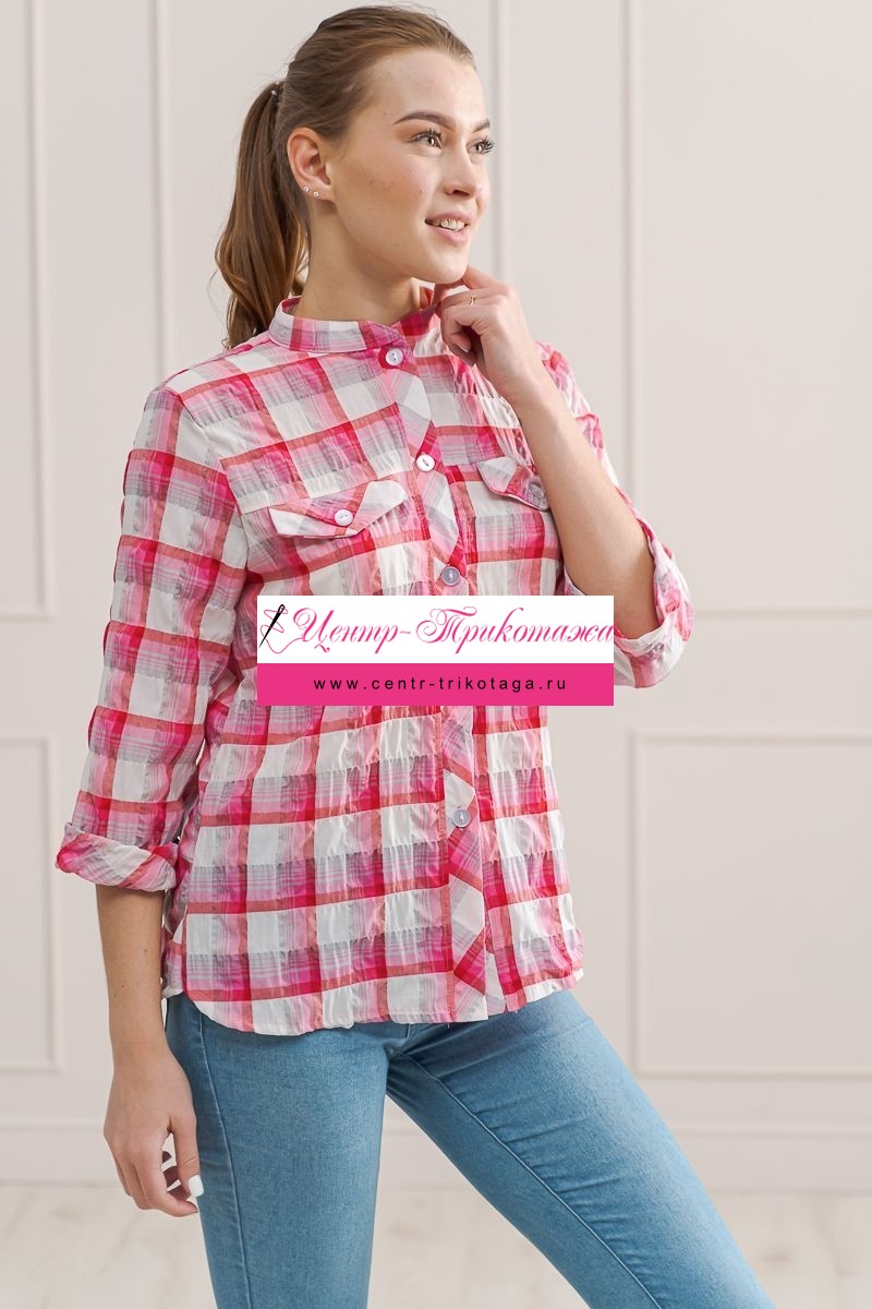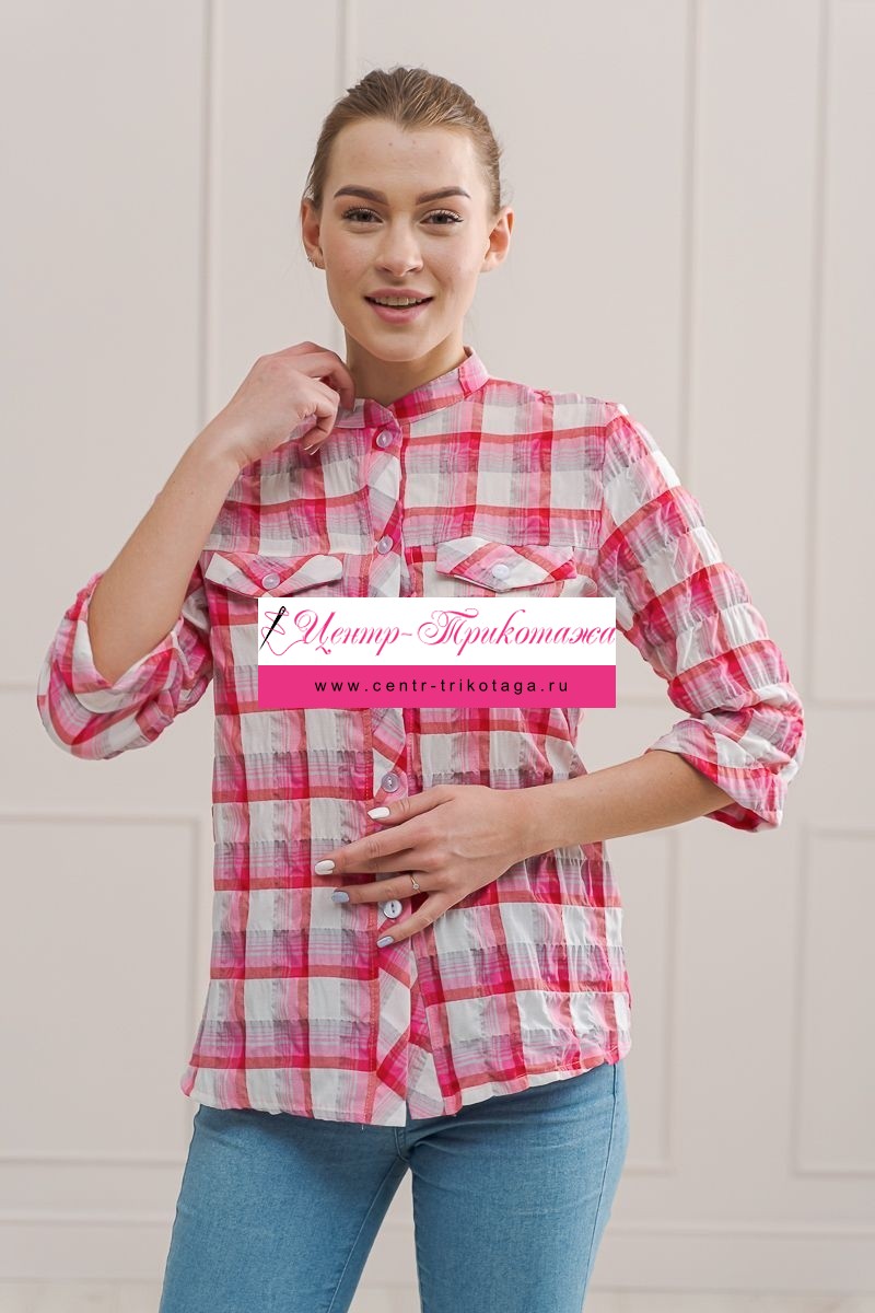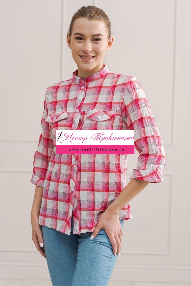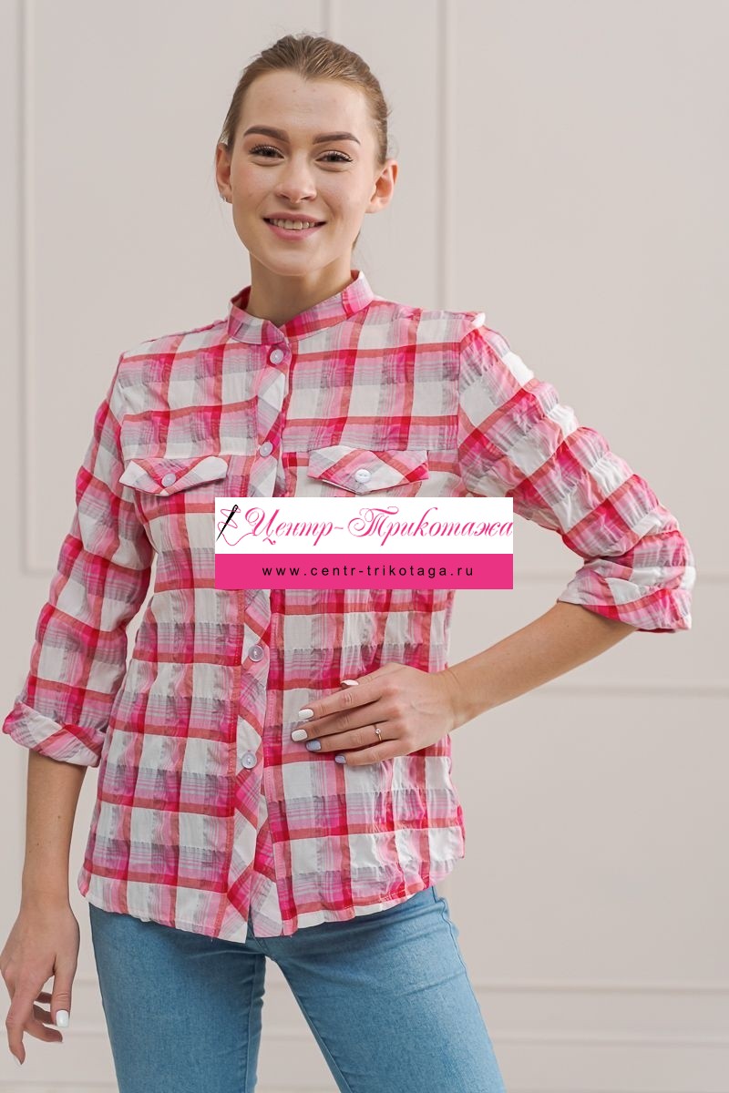 Туника женская из жатки Лесси Розовая клетка №А-07364