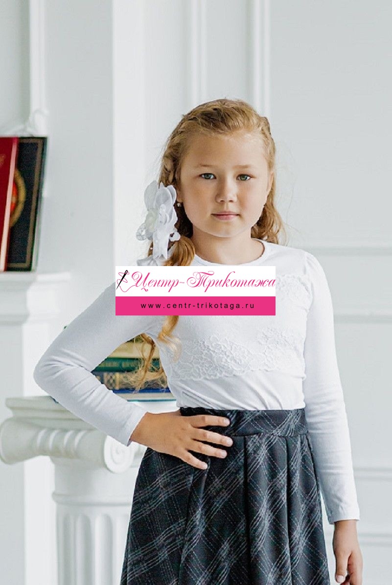 Водолазка детская с кружевом из кулирки с лайкрой Снежинка белый №А-06173