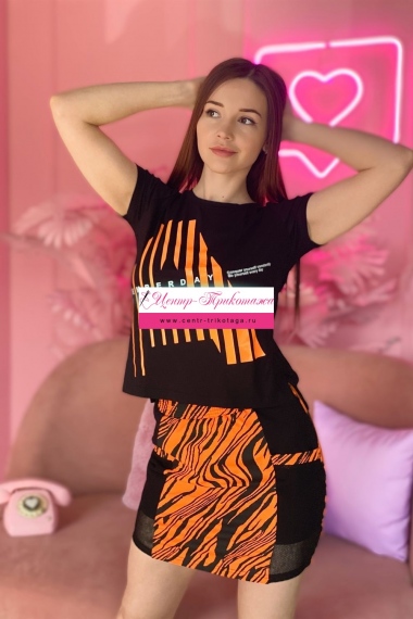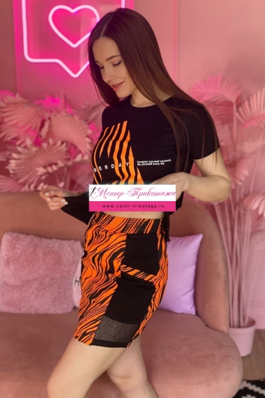 Юбка полуприлегающего силуэта, длиной выше колена, с карманами на уровне середины бедра, на эластичном поясе. Боковой карман выполнен из сетки.