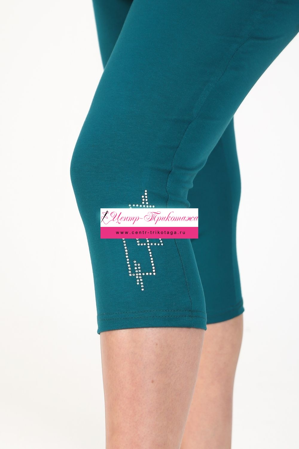 Бриджи облегающего силуэта из вискозы, длина чуть ниже колена, пояс на резинке, удобная высокая посадка. По переду в нижней части расположен декоративный узор из страз. Изготовлена модель из стрейчевого, комфортного, износостойкого трикотажного полотна в трёх расцветках на Ваш выбор.