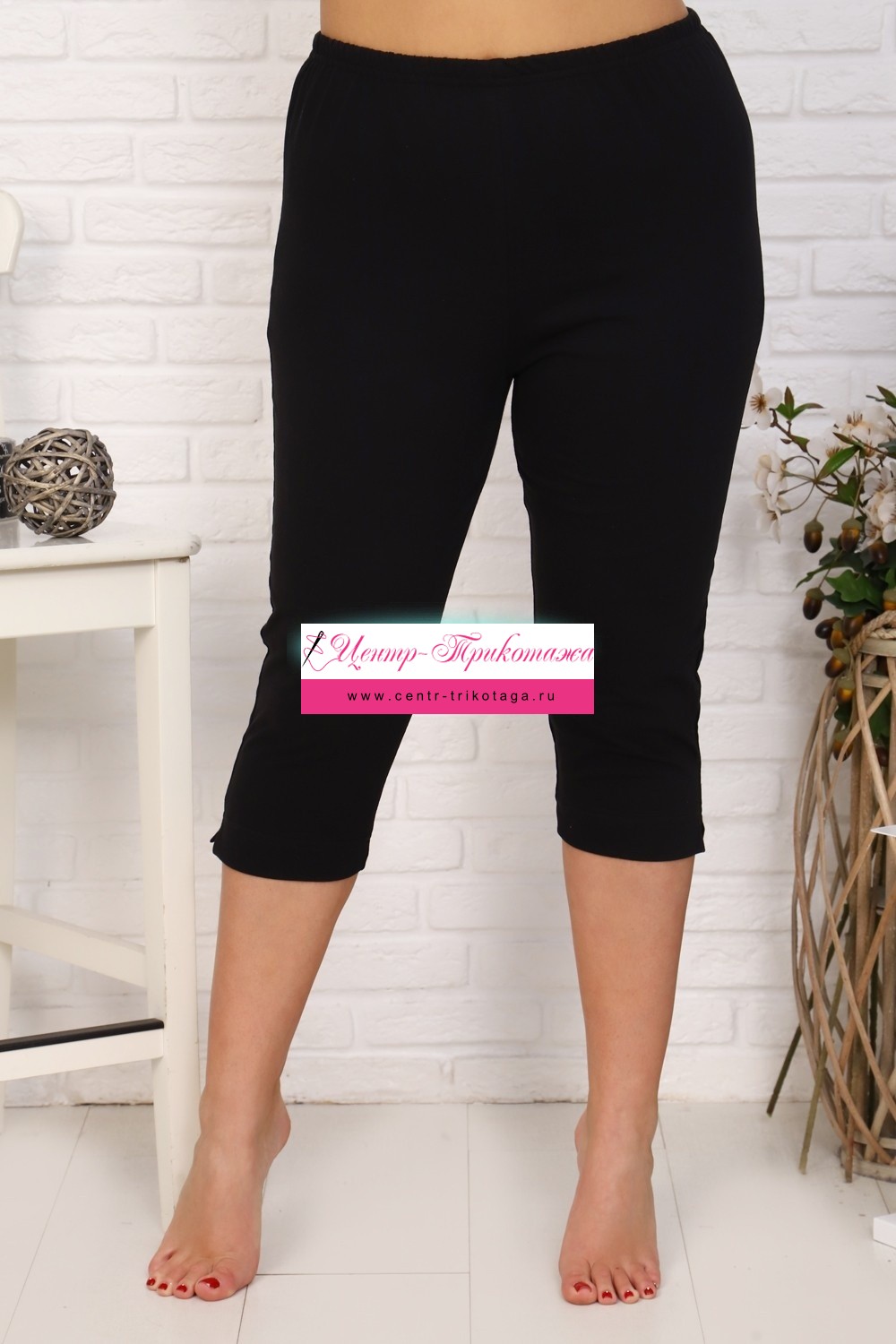 Бриджи женские облегающие, с высокой посадкой, пояс на резинке. Общая длина чуть ниже коленей.