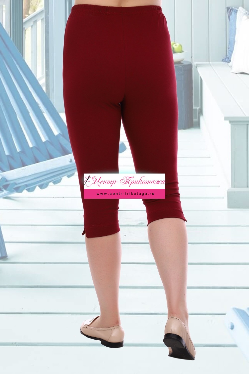 Бриджи женские облегающие, с высокой посадкой, пояс на резинке. Общая длина чуть ниже коленей.