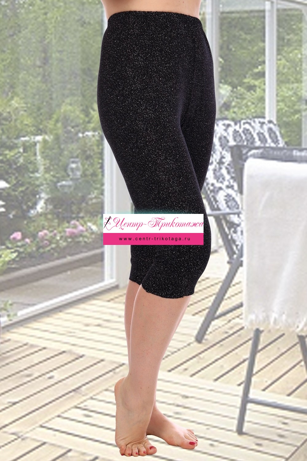 Бриджи женские облегающие с высокой посадкой, без боковых швов, пояс на резинке. Общая длина чуть ниже коленей.