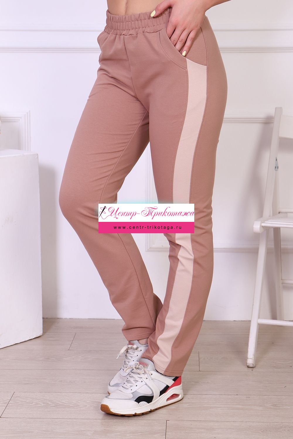 Удобные брюки для повседневной носки, выполнены из футера 2-х нитка. Вдоль боковых швов расположены лампасы из отделочного полотна. По бокам брюк имеются карманы. Пояс брюк обработан на поясной машине. Брюки подходят как для спорта, так и для отдыха