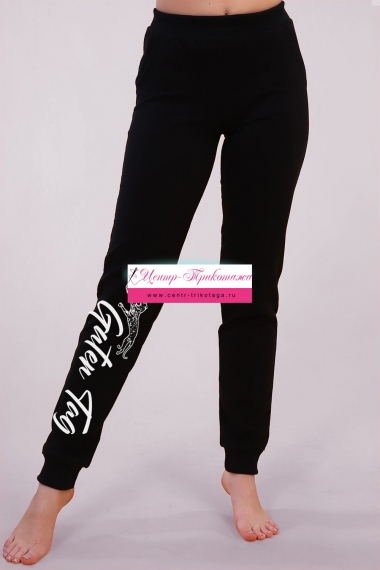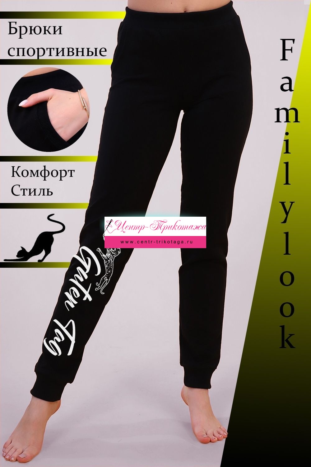Брюки женские с манжетами (серия фэмили лук). Данная модель выполнена из трикотажного полотна футер 2-х нитка, манжета, пояс и вход в карман выполнены из эластичного трикотажного полотна кашкорсе. На передней половинке присутствует принт. Отличная модель для прогулок и повседневной носки. Такая же модель 15245 порадует не только вас, но и вашу дочь