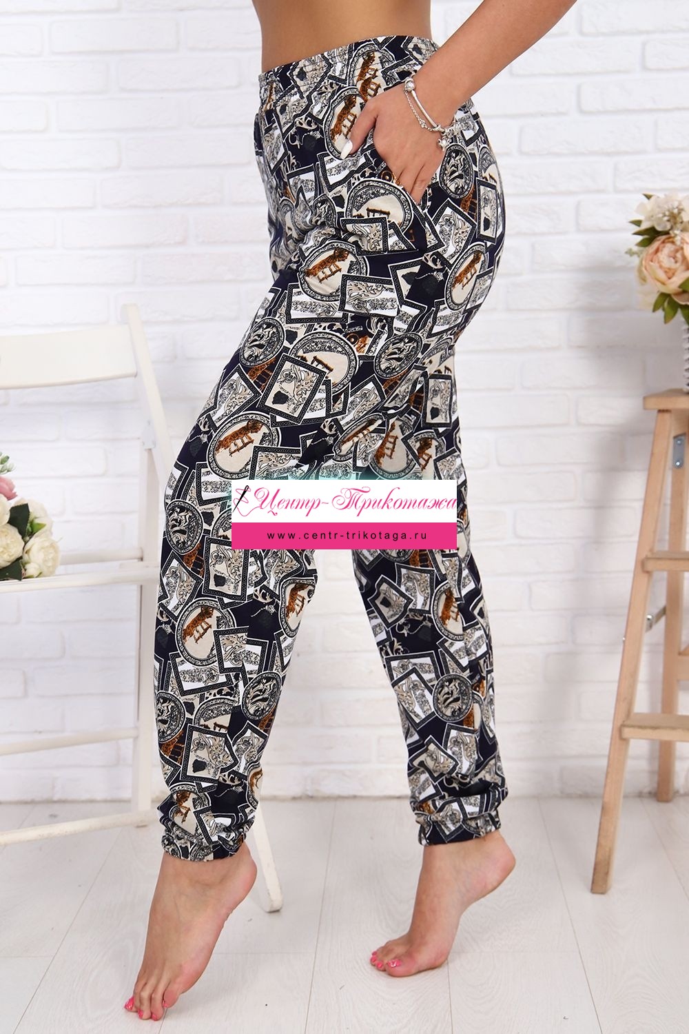 Женские стильные брюки - бананы выполнены из 100% хлопчатобумажного полотна. Высокая посадка, вместительные боковые карманы, удобный и качественно обработанный на специальной машине пояс-резинка - позволит Вам чувствовать себя максимально комфортно. Такой фасон брюк формирует выразительный женственный силуэт, скрывает мелкие недостатки фигуры и гармонизирует пропорции. Всё это образует идеальное решение для лука на каждый день, проведённый вами дома и на отдыхе.