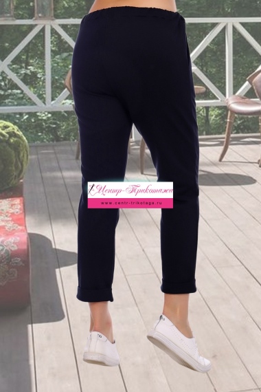 Брюки женские классического силуэта, прямые, с отворотом по низу. Декоративная отстрочка по центру в виде стрелки придает брюкам элегантность. Внутренние карманы, пояс на резинке. Внутрь пояса вставлен шнур для более точной регулировки.