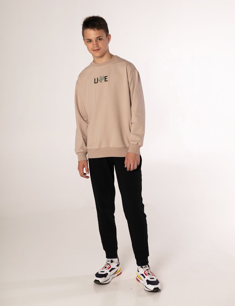 Джемпер из футера с лайкрой. Приятная на ощупь ткань не потеряет свой первоначальный вид после множества стирок. Свободный силуэт не сковывает движения и обеспечивает комфортную посадку на любую фигуру. Модель идеально сочетается с чёрными брюками артикул 1517. Модная вышивка на полочке не оставит равнодушным ни одного подростка.