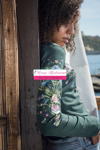 Универсальная модель из очень мягкой, комфортной к телу ткани. Прекрасно комбинируется с лосинами, джинсами, юбками, брюками. Полочка и рукава оформлены красивым цветочным принтом со стрекозами с добавлением золотого глиттера. Ткань очень хорошо тянется.