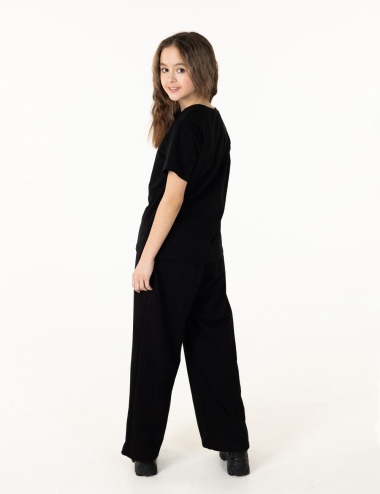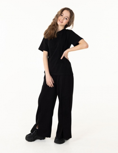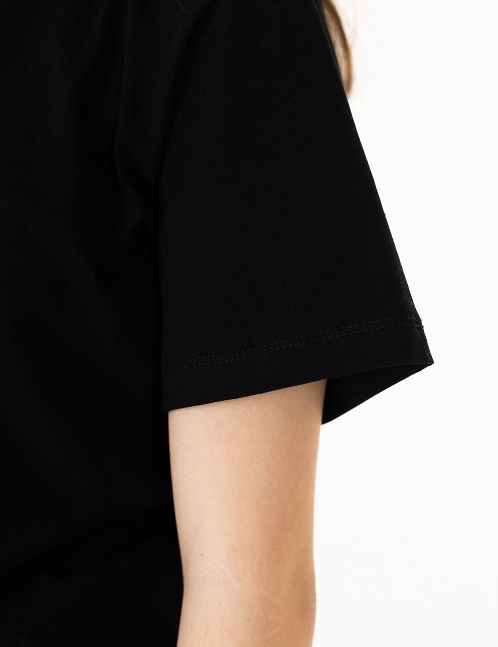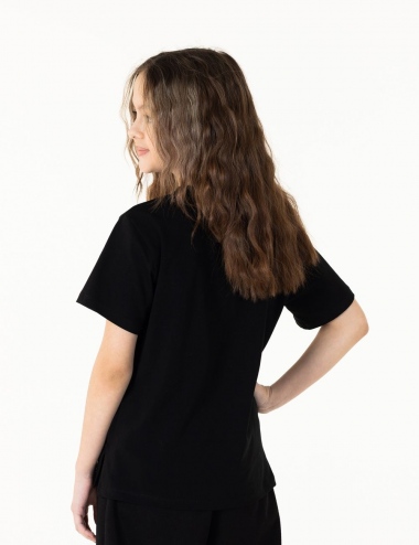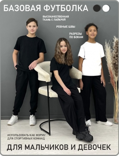 Футболка базовая чёрная для мальчиков и девочек. Футболки, один из немногих предметов одежды, который присутствуют в гардеробе каждого мальчика и каждой девочки. Их носят в любое время года, и они всегда актуальны. Для спорта ничего лучше не придумано, чем футболки, также бесспорно они идеально вписываются в прогулки жарким днем. Они способны помочь выразиться и указать на свои предпочтения. Они до предела просты и безгранично необходимы. Футболка Modestreet выполнена из высококачественной кулирки с лайкрой, поэтому она отлично выдерживает стирку и не теряет свою первоначальную форму. По бокам футболки есть разрезы. Горловина выполнена из основной ткани, что придаёт ей более эстетичный вид. Подходит для повседневного использования, для спортивных мероприятий, для активного отдыха. Идеально сочетается с черными брюками Modestreet артикул 1558.