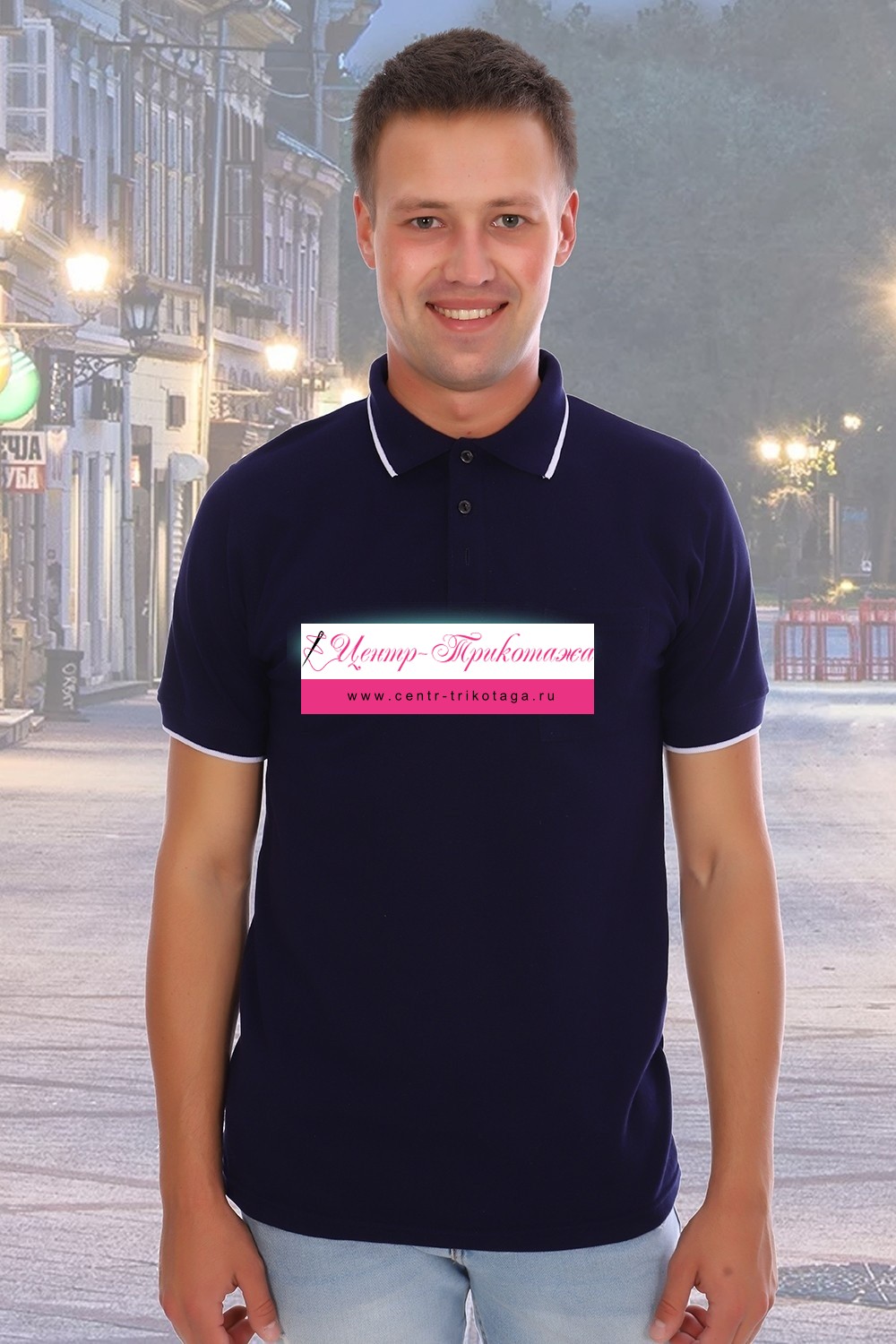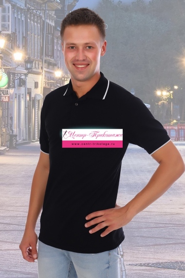 Футболка поло мужская, ткань пике-лакост, плотность 180 г/м3. На полочке планка с тремя пуговицами. Воротник и манжеты вязаные с отделкой по краю контрасной полосой в 0,5 см. Нагрудный карман. Предназначена для повседневной носки.