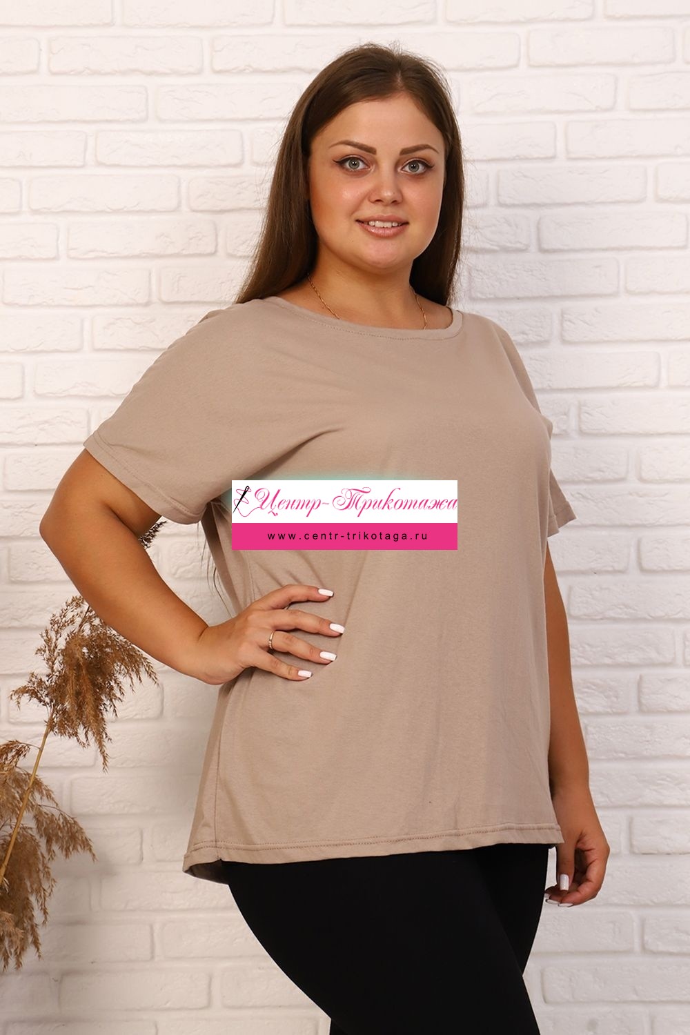 Футболка женская, свободного покроя. Рукав спущенный. Низ изделия обработан на плоскошовке.
