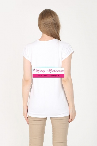 Модель свободного силуэта длиной до линии бёдер, со спущенной проймой. На передней части изделия нанесена стильная современная печать, боковой шов переходит в небольшой разрез, низ спереди чуть короче, чем спинка. Футболка изготовлена из приятной и комфортной вискозы, сочетается с любой одеждой.
