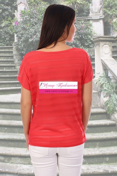 Футболка женская из лёгкого, приятного к телу трикотажного шитья. Футболка свободного покроя, горловина в виде лодочки , спущенная пройма. Модель хорошо будет смотреться в комплекте с джинсами, брюками, а также с любой юбкой.