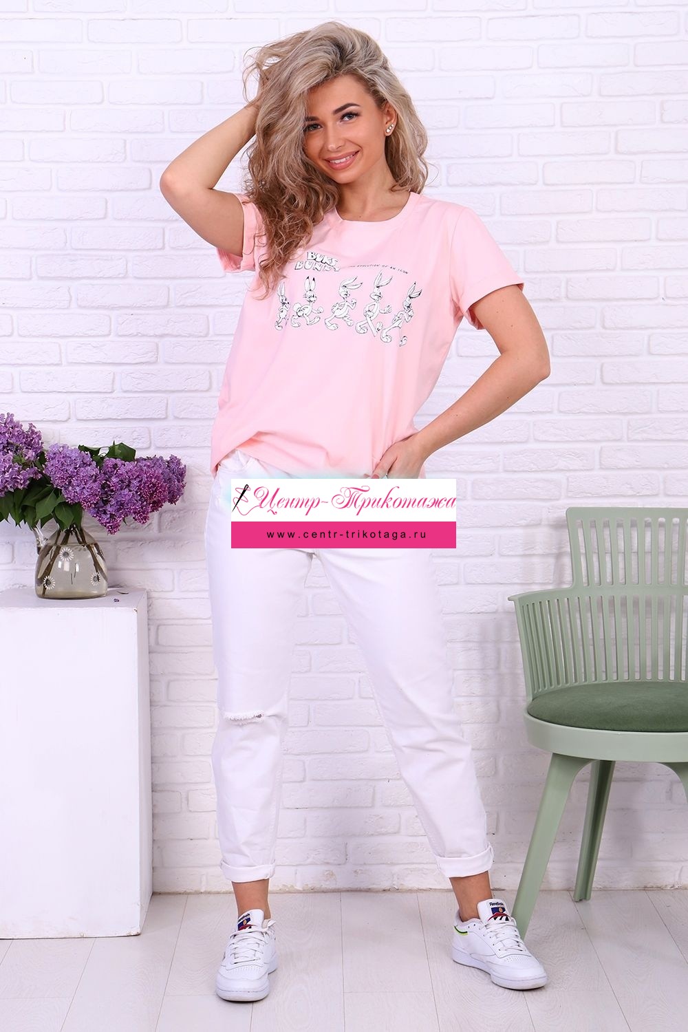 Молодежная футболка с модным принтом - зайчики. Футболка с рукавом на манжете, по горловине обтачка. Ткань очень приятна к телу. Подойдет на любое время года.