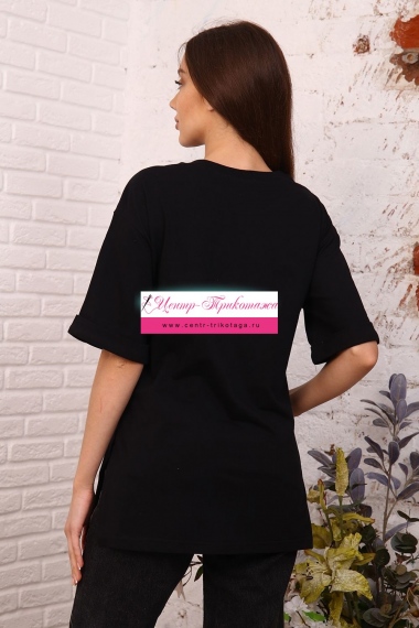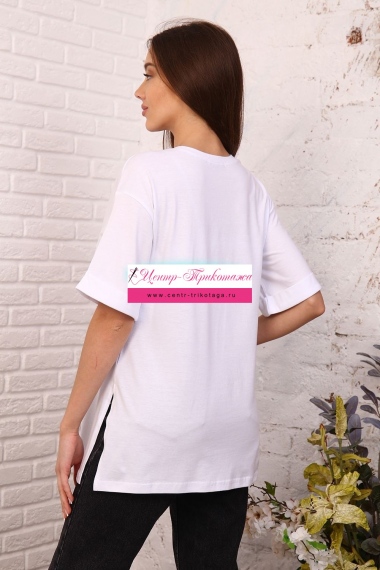 Футболка женская оверсайз. Свободного покроя со спущенными плечами. Горловина округлой формы, по бокам футболки разрезы. На полочке выполнен модный принт. В этой футболке Вы будете выглядеть стильно.
