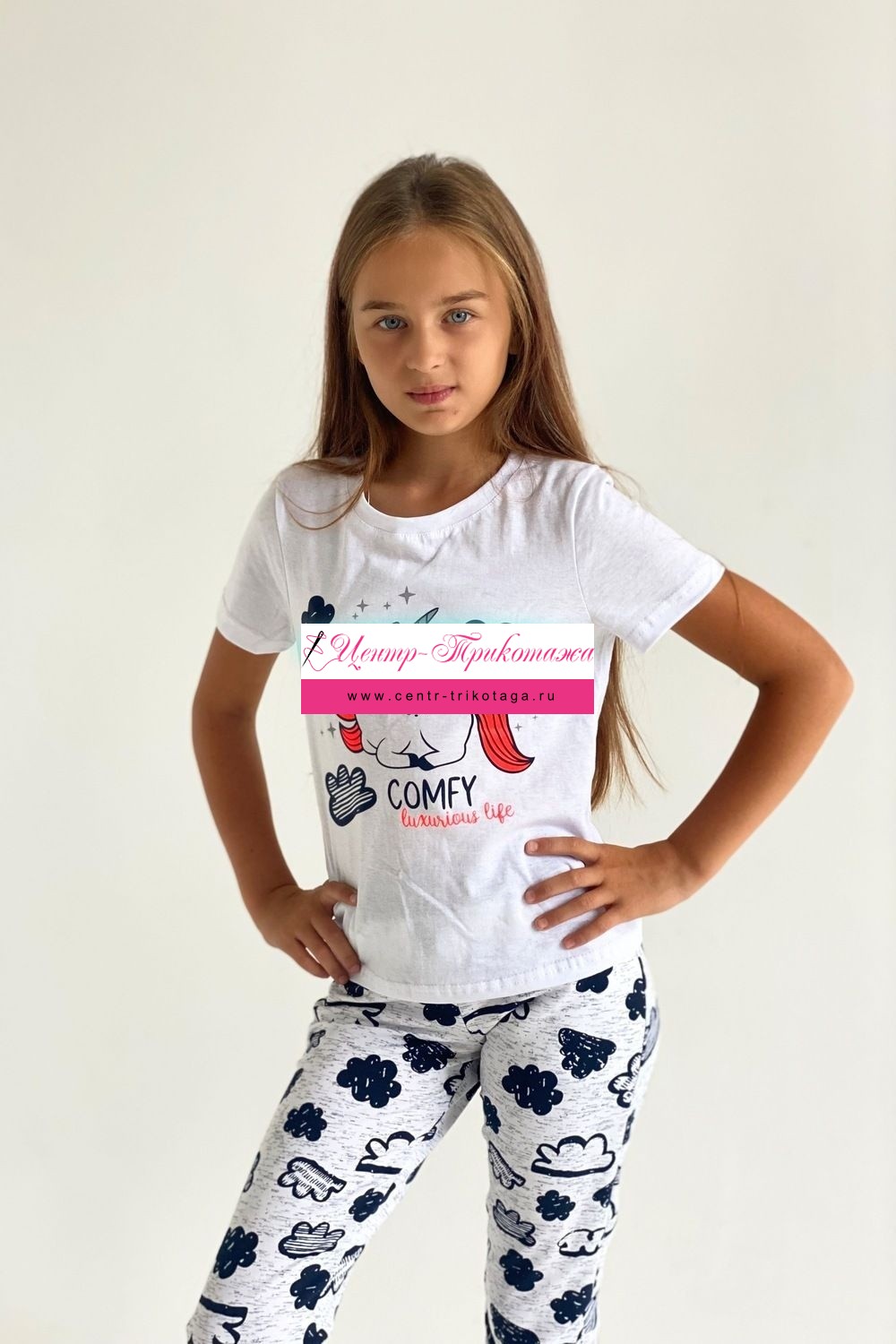 Футболка детская с коротким рукавом. Горловина с круглым вырезом, на полочке принт.