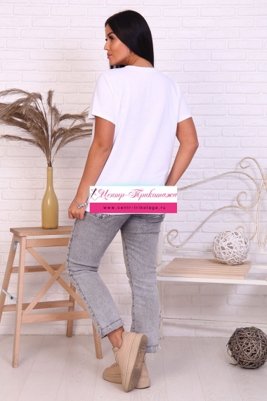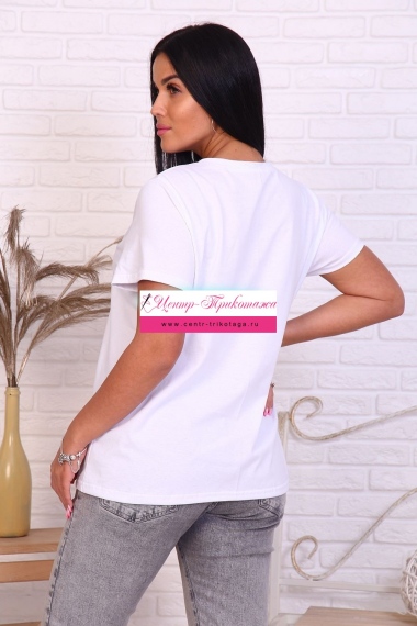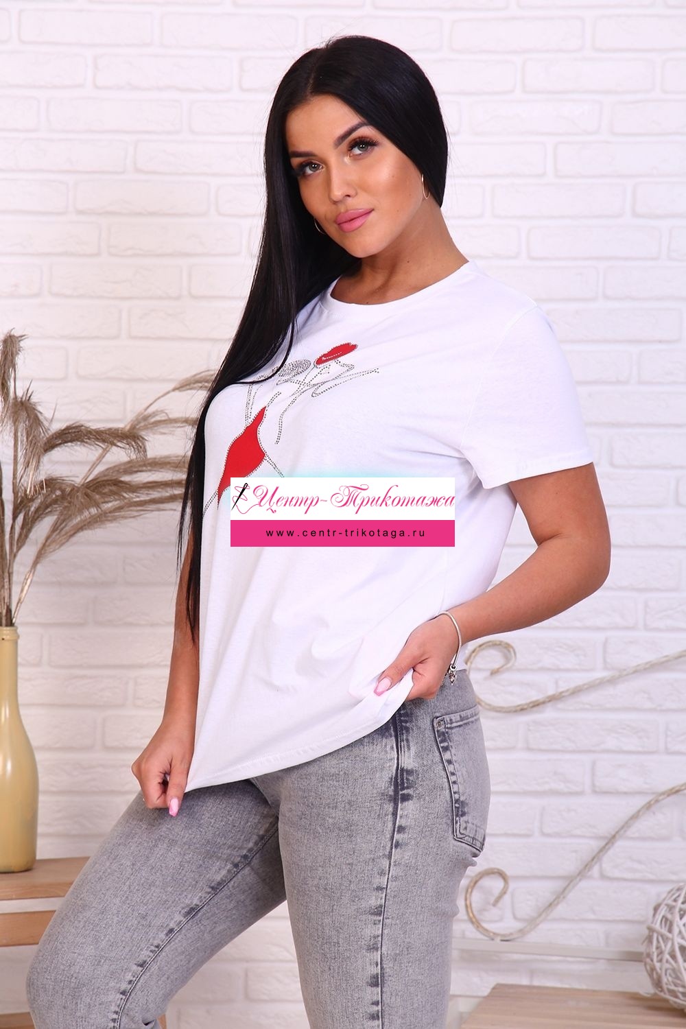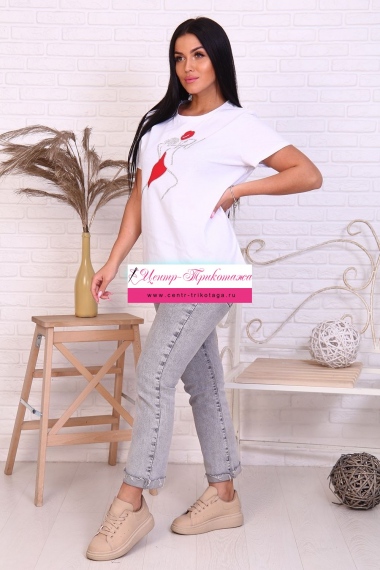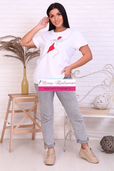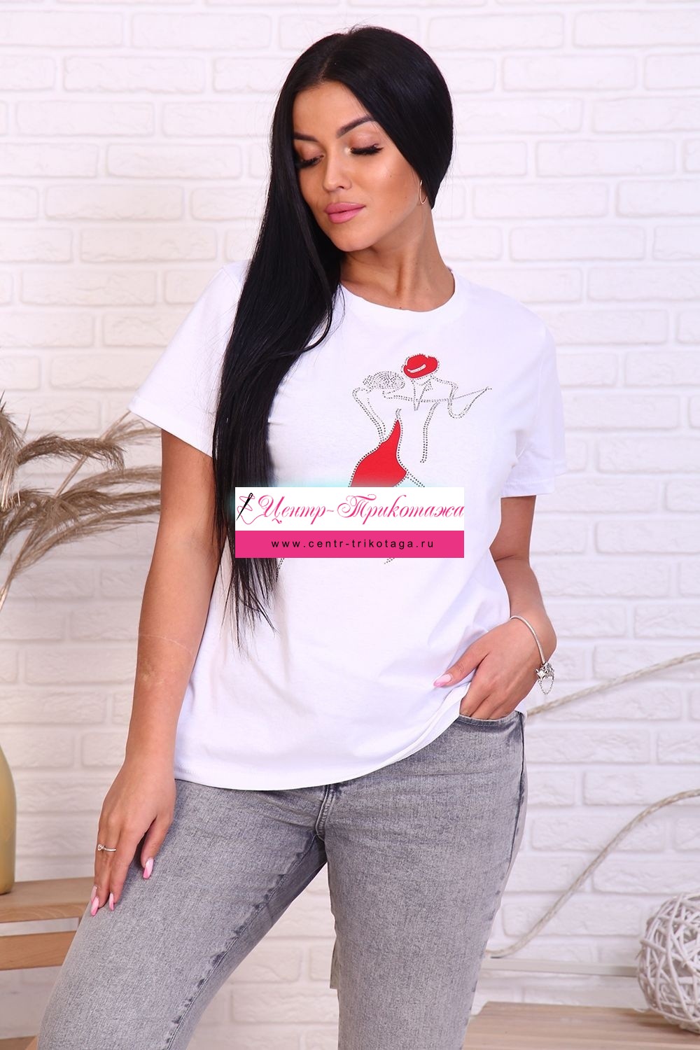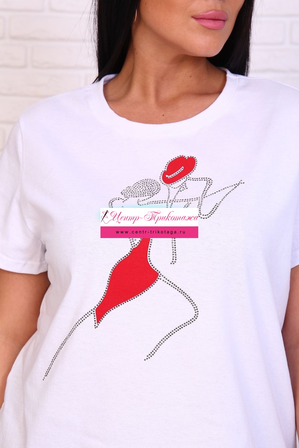 Футболка обычного кроя. Короткий рукав. Имеется декоративный элемент в виде страз: мужчина с женщиной танцуют танго. Выполнена футболка из кулирки: 100% хлопок, плотностью 140 гр