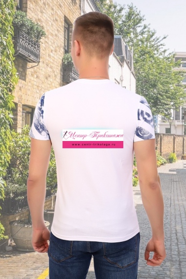 Мужская футболка из кулирки. Короткие рукава, круглая горловина, украшена печатью на груди и рукавах, прямой силуэт.
