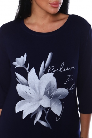 Футболка женская из вискозы. Украшена печатью, рукав 3/4.