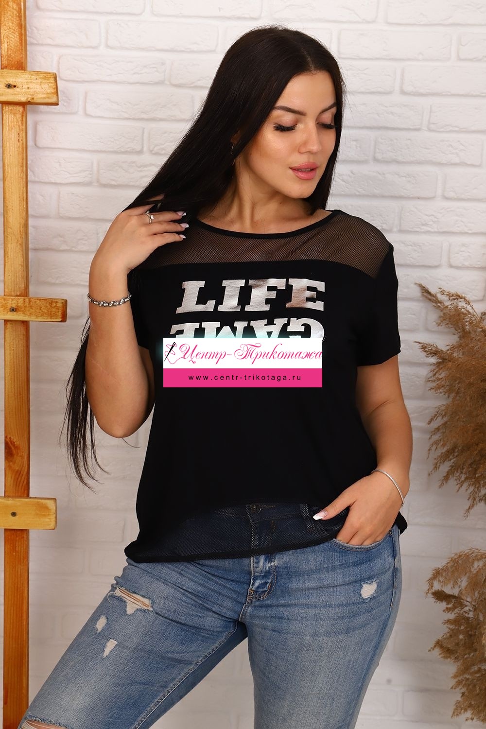 Женская футболка полуприлегающего силуэта выполнена из приятной к телу вискозы и пользующейся большой популярностью сетки. На центральную деталь полочки наложена печать в виде серебристой надписи, что делает футболку ещё более привлекательной. По мнению модных специалистов вещи с сеткой должны стать must - have в гардеробе каждой женщины.
