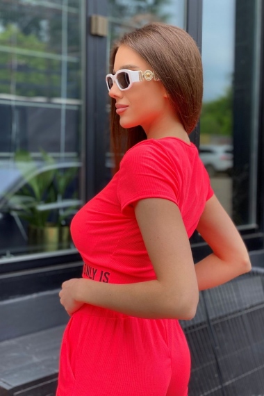 Футболка облегающая, с округлой горловиной, длиной выше талии. Рукав втачной, короткий. Горловина обработана бейкой из основного полотна.