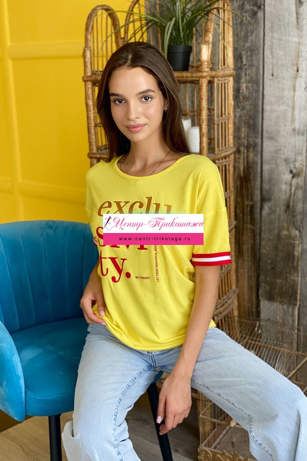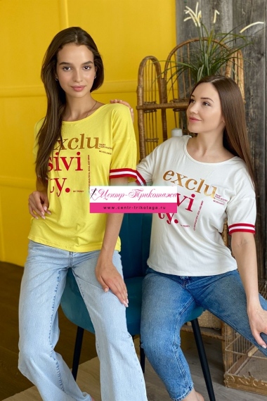 Футболка прямого силуэта, с округлой горловиной спереди, с удлиненной спинкой. Рукав короткий, обработанный декоративной тесьмой. В верхней части спинки обработан фигурный вырез с тесьмой. Горловина обработана бейкой из основного полотна.