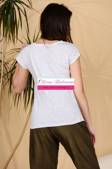 Футболка полуприлегающего силуэта, средней длины, с округлой горловиной. Рукав цельнокроеный, короткий.
