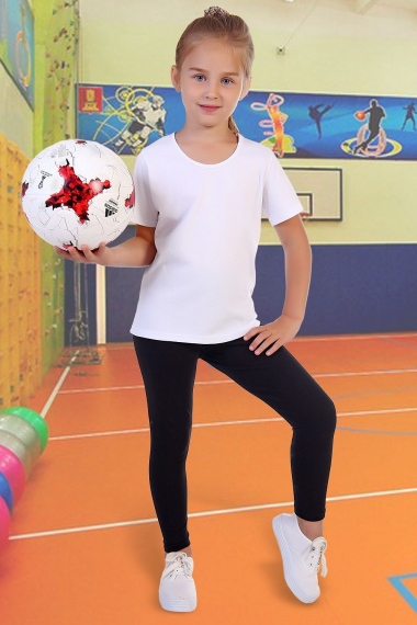 Футболка из кулирки для девочек. Однотонный дизайн, белая расцветка, округлая окантованная в тон горловина, классический покрой. Может быть парой к детским леггинсам Милана (продается отдельно)