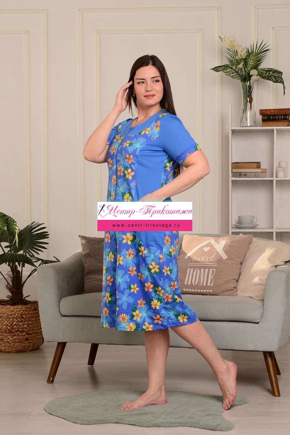 Халат женский на молнии. Дома хочется выглядеть стильно и не лишиться комфорта. Тогда обратите внимание на халат с коротким рукавом, изготовленный из натурального хлопка. Стильный халат из мягкого трикотажа может смело использоваться как банный, пляжный и хозяйственный. Женский халат на молнии с боковыми карманами. Рукав короткий. Состав: 100% хлопок. Крой халата поможет не только скрыть недостатки фигуры, но и подчеркнуть все достоинства.