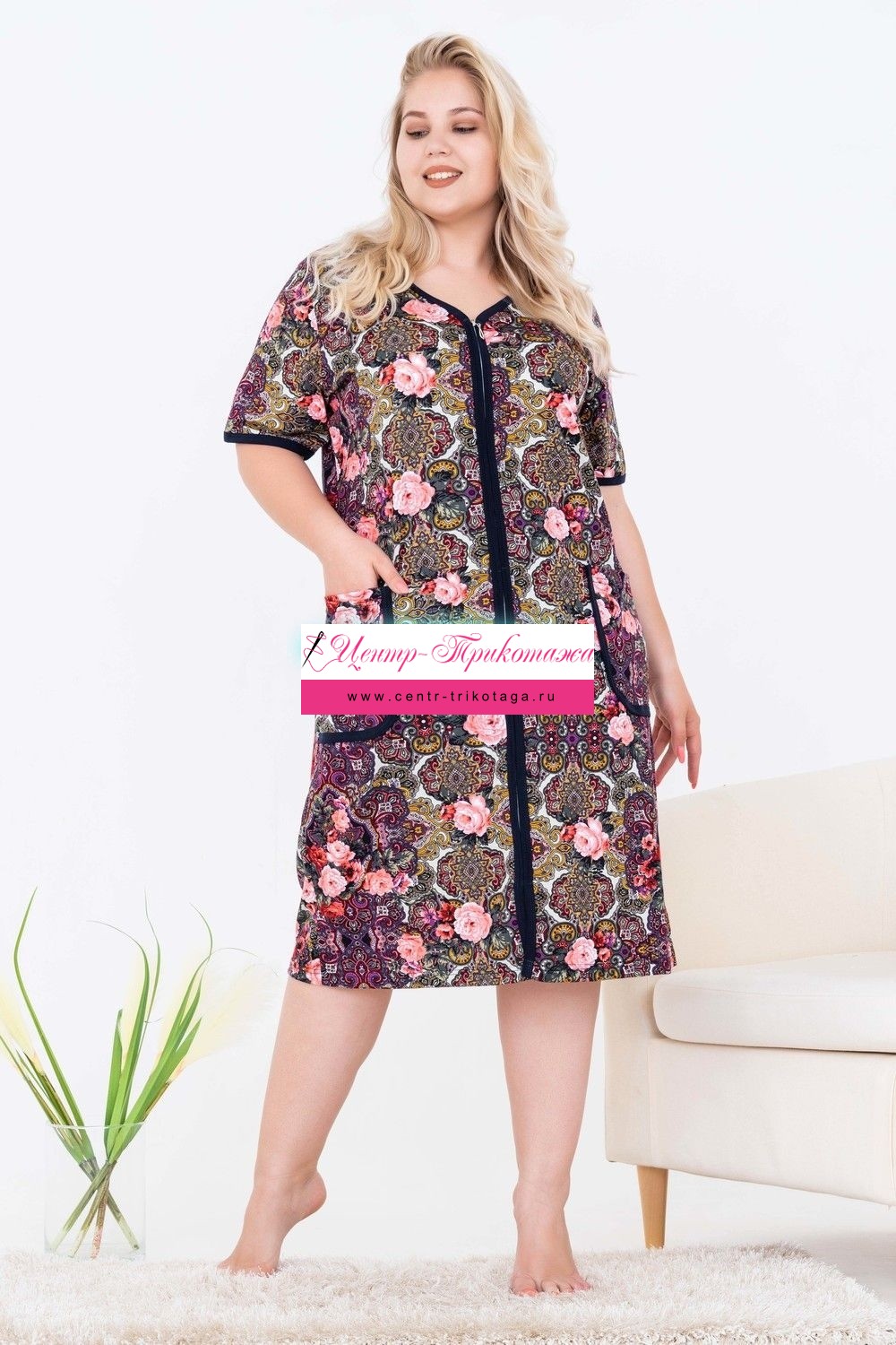 Халат на молнии с рукавом для дома и для любимой дачи. Ничего лишнего, просто удобно.