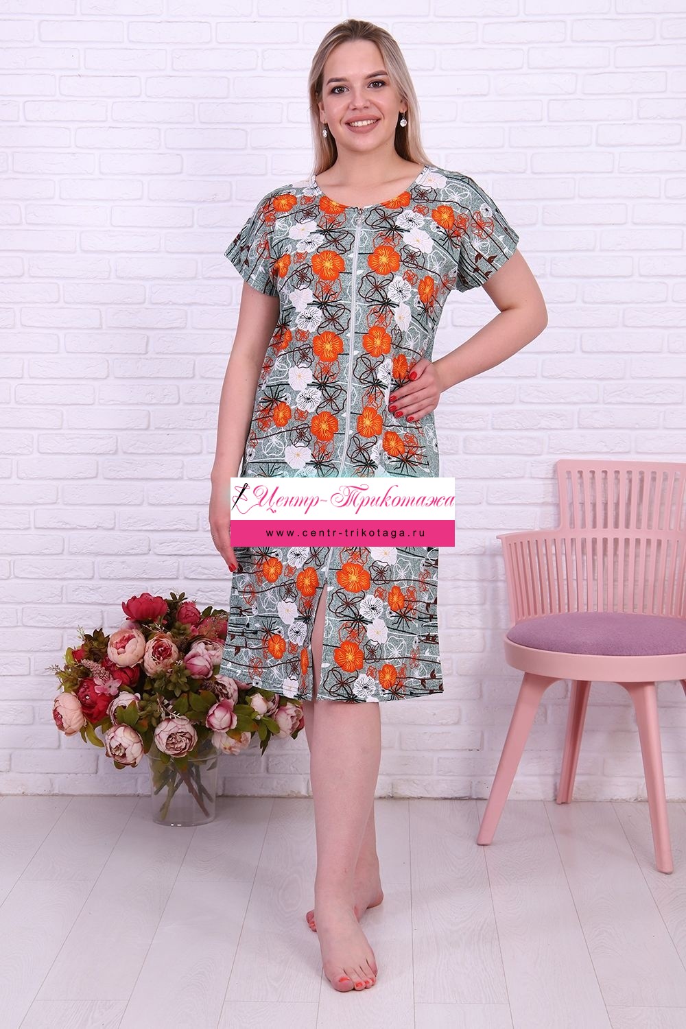 Женский халатик полуприлегающего силуэта, универсальный крой со спущенной проймой не сковывает движения - комфортен при носке. Застежка молния, в боковых швах предусмотрены карманы.