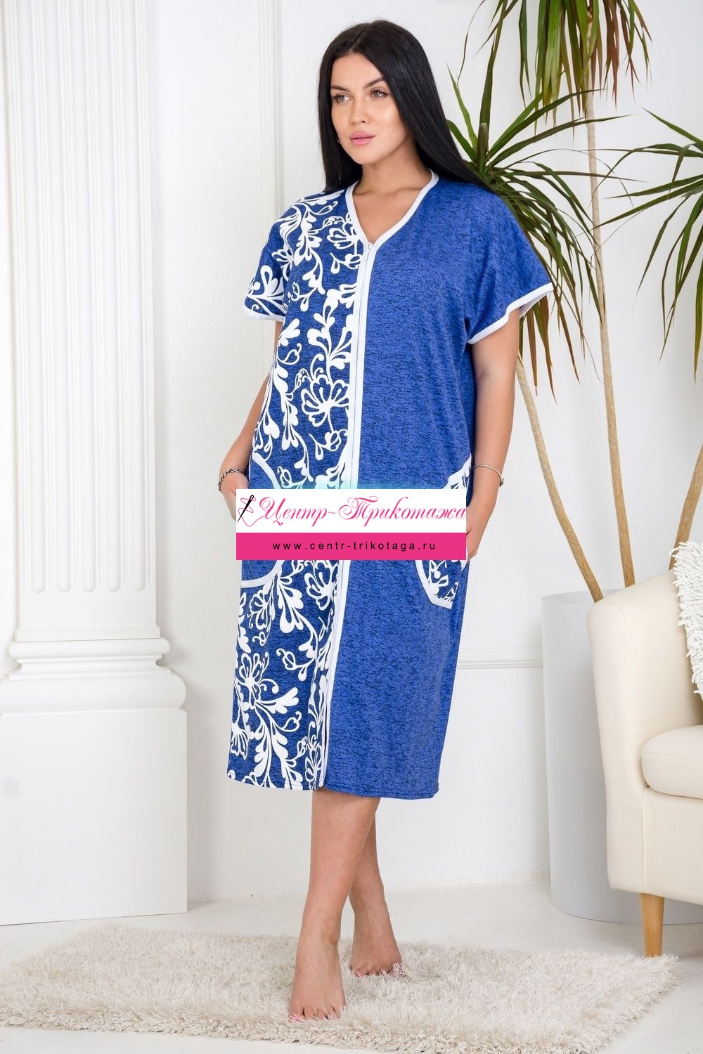 Уютный безрукавный домашний халат. Модель выполнена из 100% хлопка, на молнии, с двумя карманами по бокам. Незаменимая вещь в женском гардеробе.